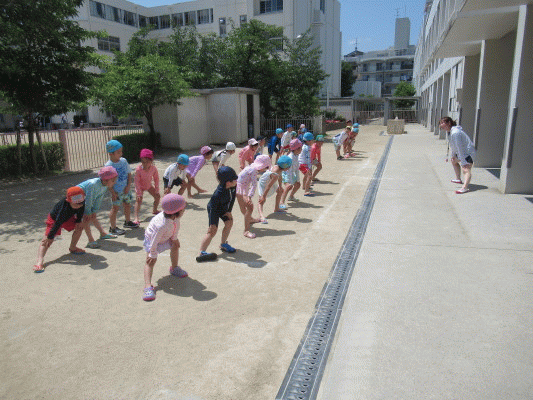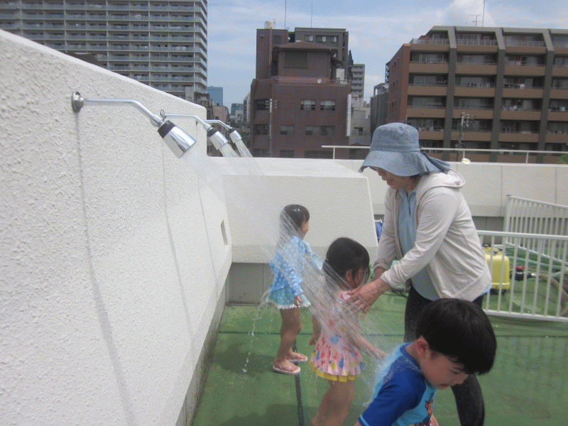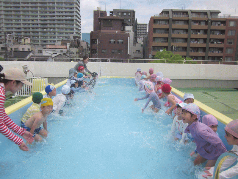 朝から、子どもたちは「今日は、プールだね!」「早く入りたいな〜!」と、とてもプールを楽しみにしている様子でした☆