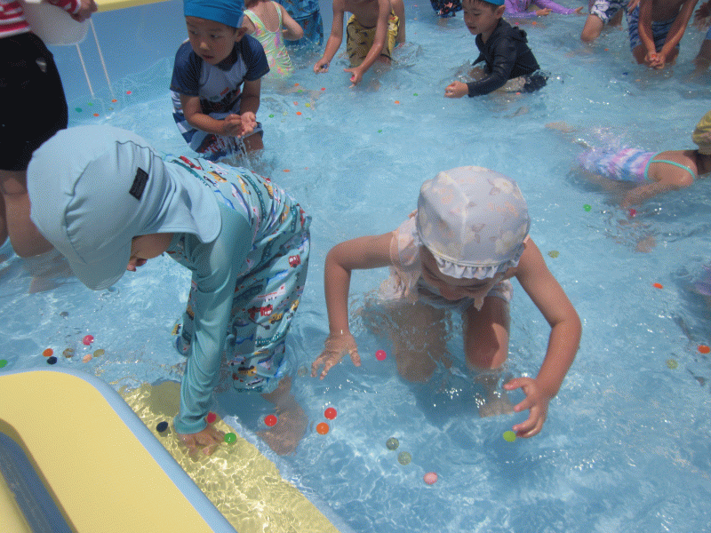 お水の中でも、一生懸命ボールやコイン探す子ども達☆