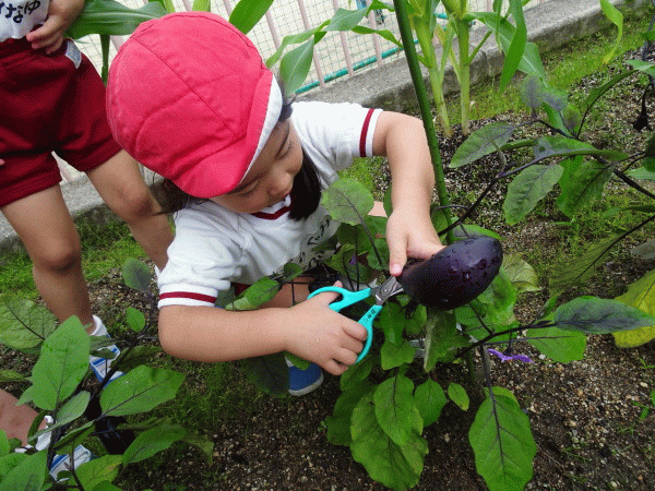 ☆年中組 ナスを収穫して食べました☆