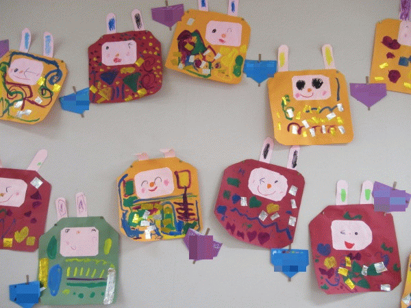 顔はのりで貼る前に、眉毛や口を自由に動かして色々な表情を作りながらみんなで遊びました☆