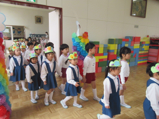 園長先生のお話では、「クラスの中で一番早く誕生日を迎えた4月生まれの皆さんは、一番のお姉さん、お兄さんですね。これから、色んなことに一所懸命頑張っていってほしいと思います。」とお話をいただきました。