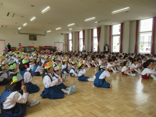年長のお兄さんお姉さんと一緒に手を繋いでかわいい門を通ると、いよいよ歓迎会のスタートです!!