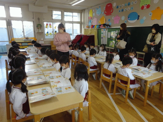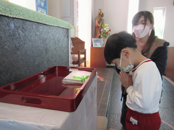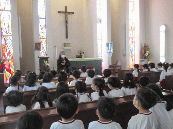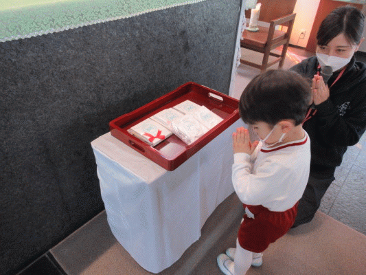 新しい年の始まりに、学年ごとにお御堂に行き、お祈りをお捧げしました。