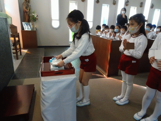 今日、お御堂でお捧げした子どもたちの優しい気持ちのこもった献金は、世界中の困っている子どもたちに届けたいと思います。