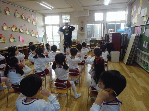 野上シスターから、世界中の子どもたちのことを思う気持ちの大切さについて、各学年ごとにお話をいただきました。