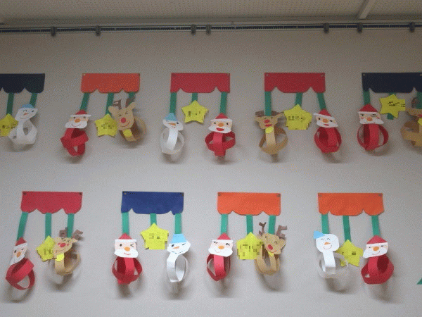 年中組の12月の壁面は、『クリスマスモビール』です♪