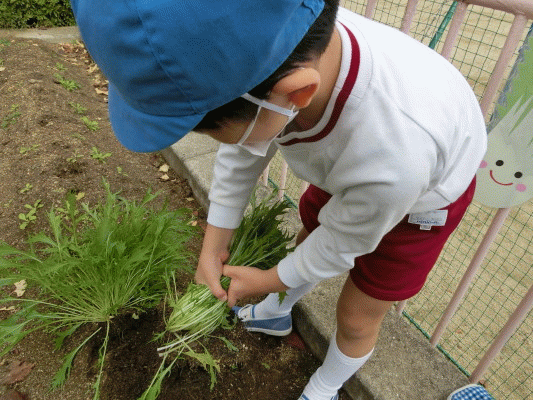 年長組で10月に植えた水菜が、ぐんぐんと大きくなり、収穫することが出来ました♪