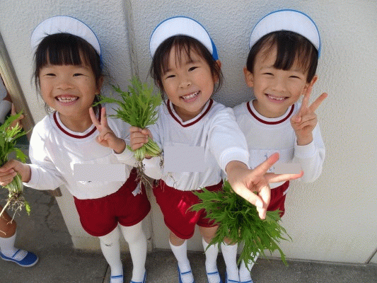 ☆年長組 水菜を収穫しました☆