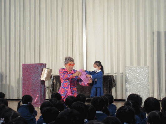 テレビでマジックをみたことがあっても、実際に見ることは初めてという子どもたちが多く、最後までとても楽しく見ることが出来ました♪