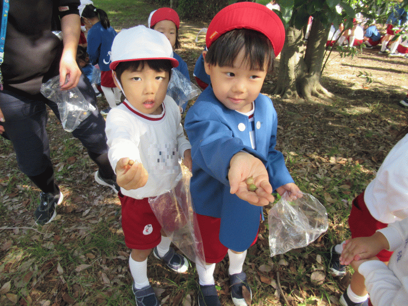 「帽子を被ったどんぐりが沢山あるよ!」「大きいまつぼっくりだ!」と喜ぶ姿が見られました☆