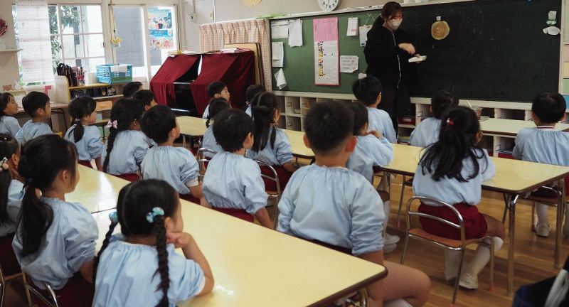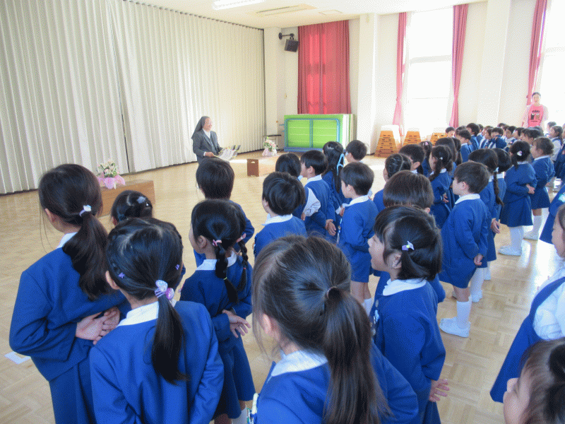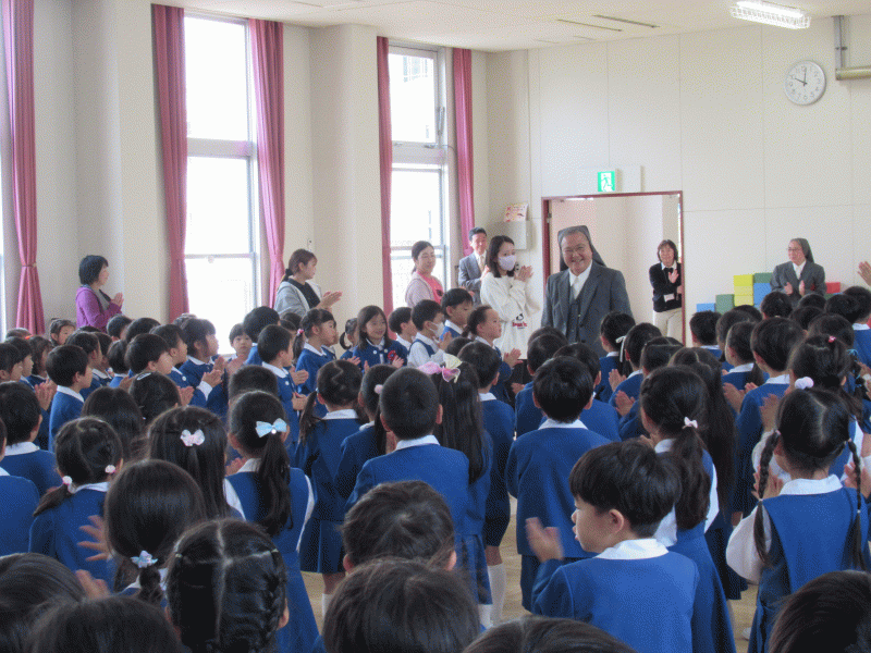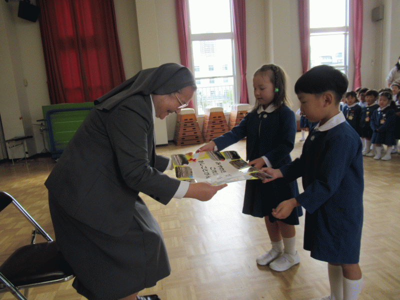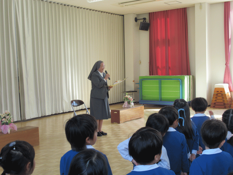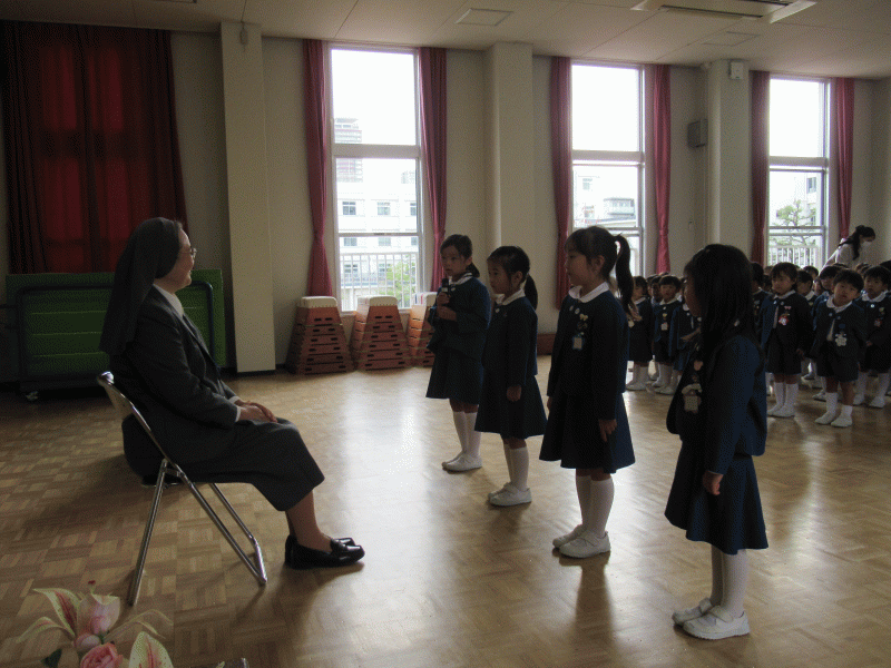 「サレジアンシスターズは日本全国にあり、その中でシスターたちをまとめてくれるひとだよ」と聞いた子どもたち。「どんなシスターかな?」と会えることを楽しみにしていました。