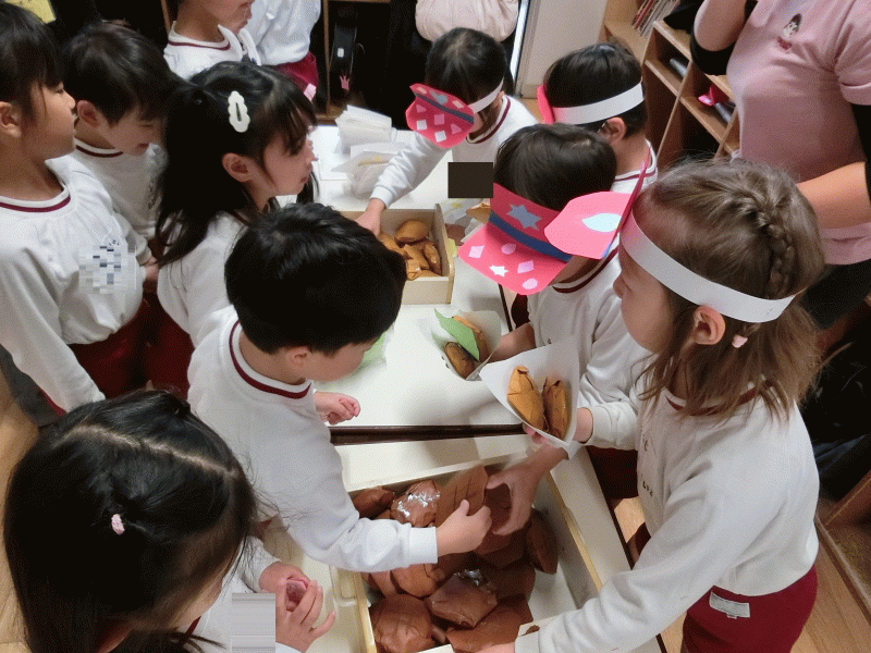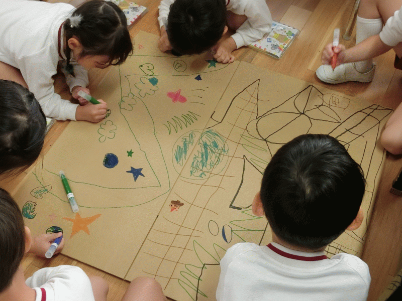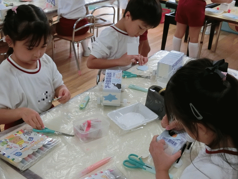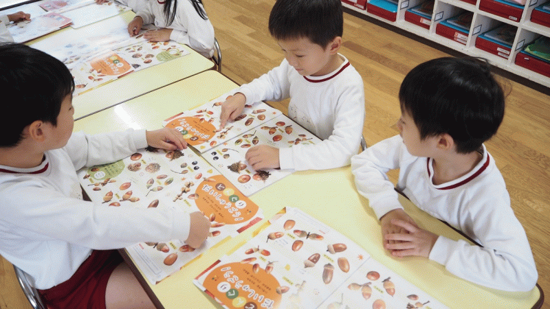 これからも自由遊びなどで、木の実を使って楽しく遊びたいと思っていますので、また、幼稚園にもってきていただけると嬉しいです♪