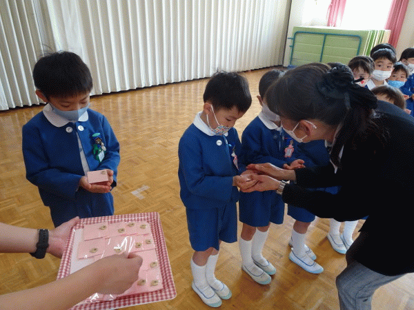 園長先生からは、おメダイのプレゼントを頂きます♪
