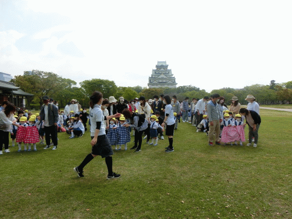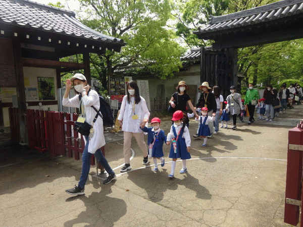 学年ごとに集合をし、手のアルコール消毒を済ませて西の丸庭園に入ります。