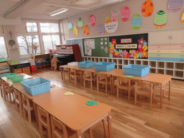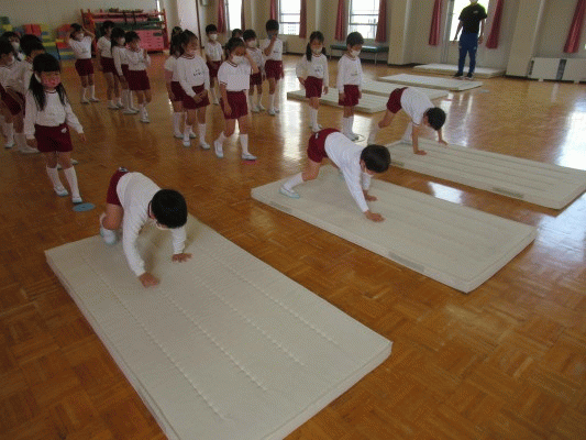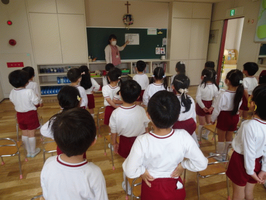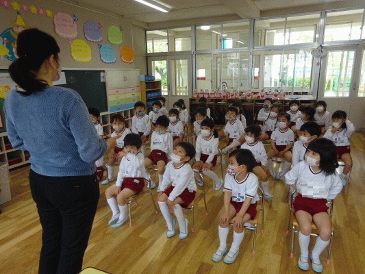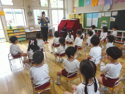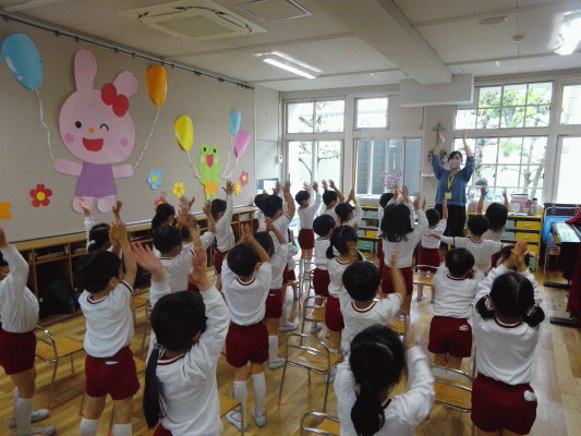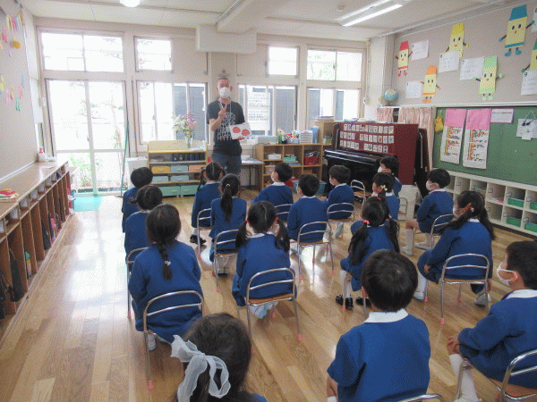 「年中組になると英語の時間があって、歌やゲームをするんだよ♪」と伝えると、