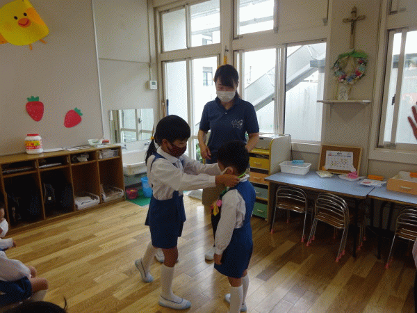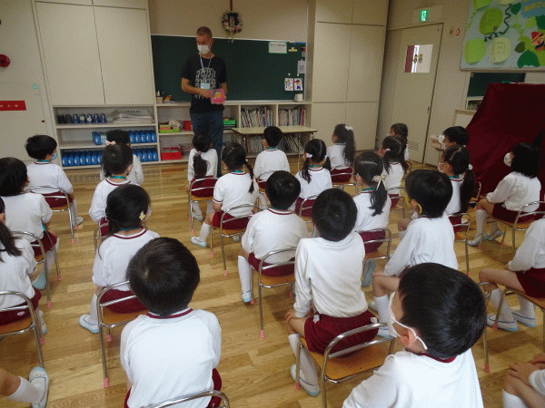 今日は年長組に進級してから、初めての英語と音楽指導がありました♪