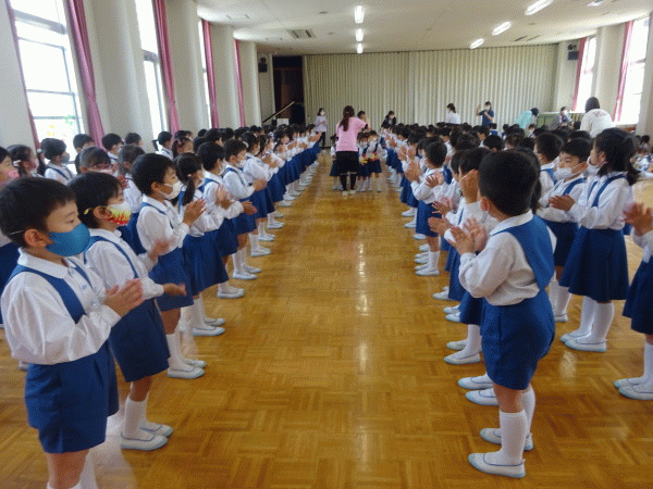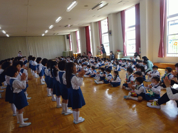 今日は新入園児の子ども達を遊戯室にお迎えして、みんなで新入園児歓迎会をしました(^^)