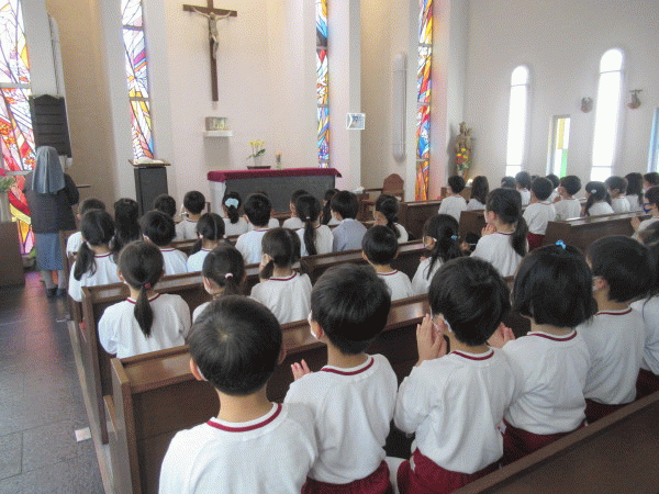 3年間見守ってくださった神様に、感謝の気持ちを年長組みんなで伝えに行きました☆