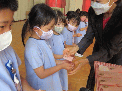 お歌と言葉のプレゼントの後には、園長先生からオメダイをいただきました☆
