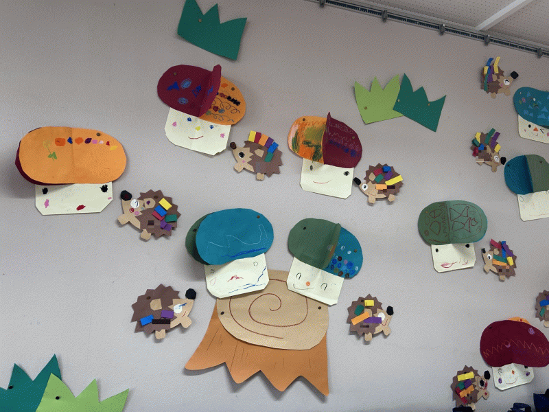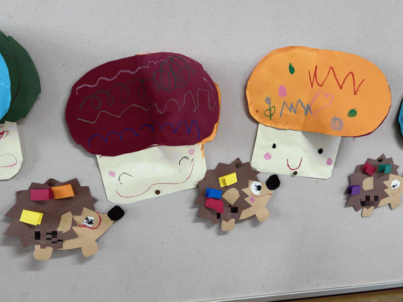 年少組の10月の壁面は、「きのこ」です!