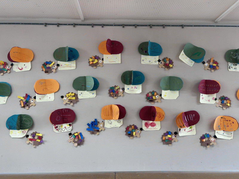 美味しそうなきのこが完成したので、カラフルなトゲトゲをつけたはりねずみさんも、嬉しそうに食べに来てくれました!