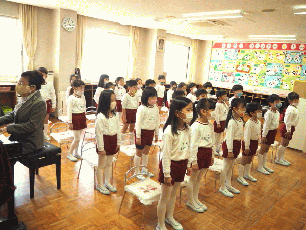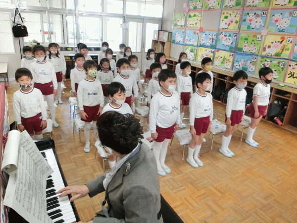 音楽では、“大きな古時計”“ことりのうた”を歌いました。
