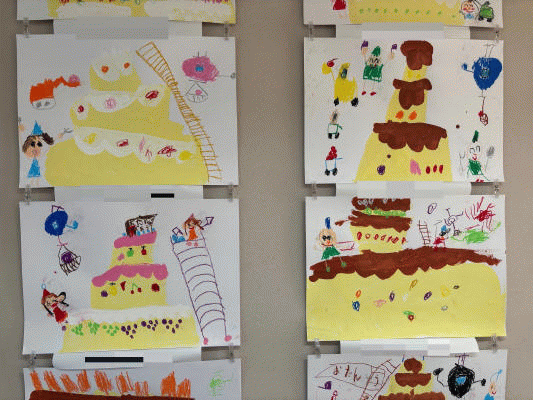 お部屋に、美味しそうな素敵なお誕生日ケーキがたくさんならびました♪