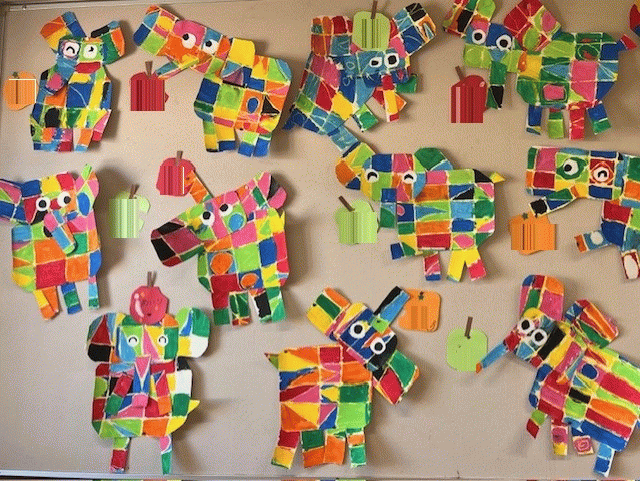 年長組の9月の壁面は、「エルマー」です(*^▽^*)