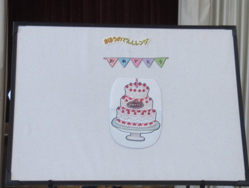 先生からのプレゼントは、パネルシアター「まほうのでんしレンジ」です。