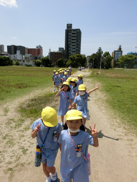 今日は、いいお天気だったので、年長組でなにわのみや公園までお散歩をしました!!