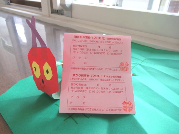 (登園日、登園日以外に関わらず、両グループとも保育終了後14時より預かり券が必要)