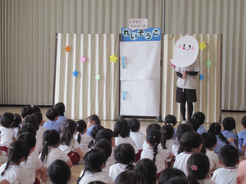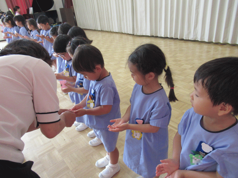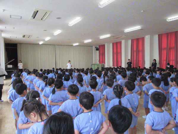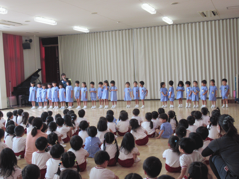 園長先生からは、「この1学期、今まで出来なかったことが、出来るようになったということが増えましたね。」「夏休みは、自分の命や周りのいろんなものの命を大切にしましょう。」とお話をいただきました。