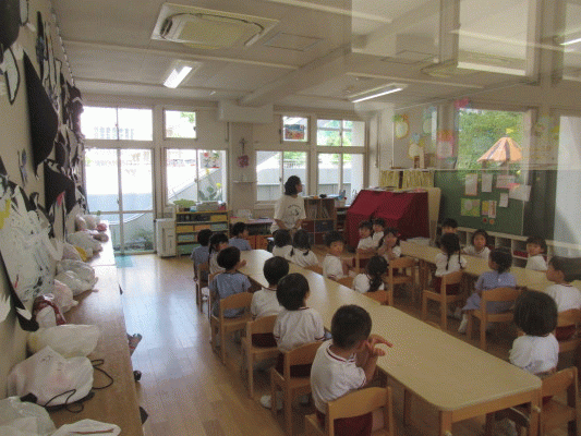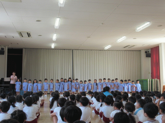 園長先生からは暑い日が続きますが、水分をのどが渇いてなくてもしっかりとり、しっかりご飯を食べ、暑さに負けないように元気に過ごしていきましょうとお話がありました!!