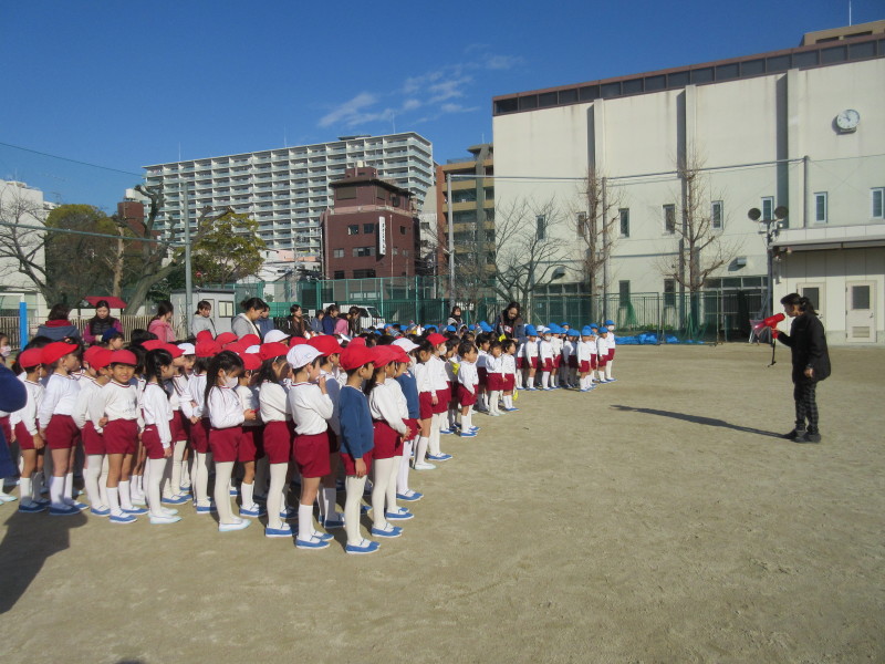 園長先生から、「1月は、初夢、書き初め、初日の出など、たくさんの“初”という字のつく言葉がたくさんある月です。そして、“大寒”といってとても寒い月でもあります。風邪や、寒さにも気をつけて過ごしましょう。」ということや、「今、1年で1番きれいな月(スーパームーン)を見ることが出来ます。」とお話をいただきました。