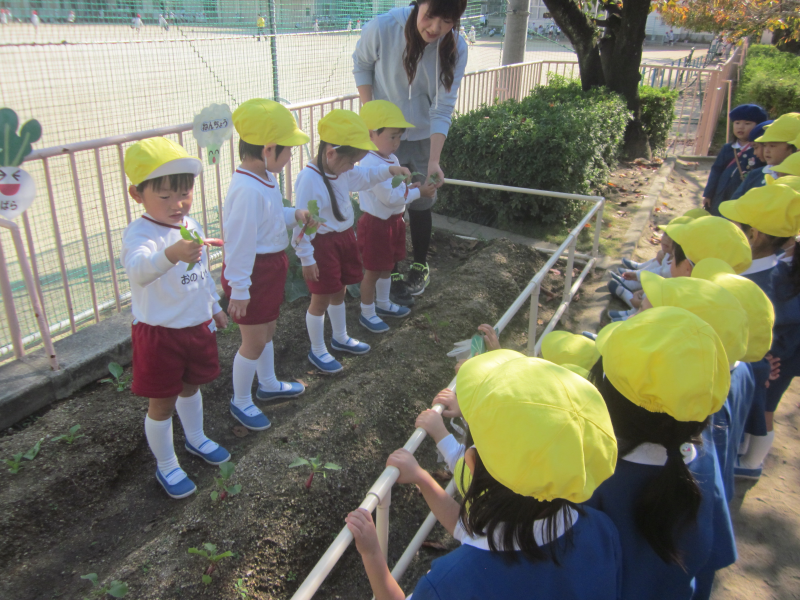 先日、年少組で育てていたはつか大根をみんなで収穫しました!!