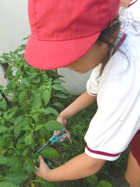 大きくなり実ったので、子ども達と一緒に収穫しました!