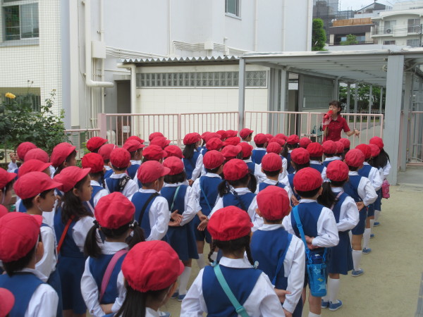 バスに乗る前に園庭でお祈りをして、園長先生のお話を聞き出発!!