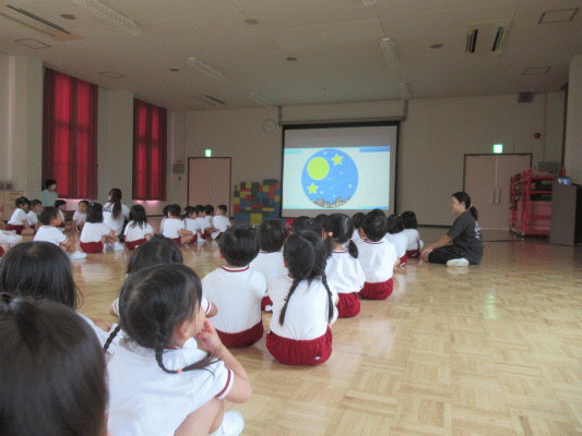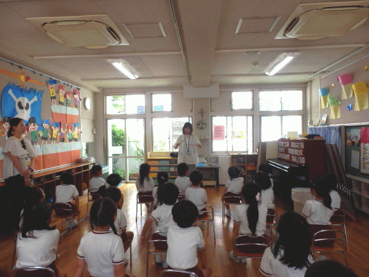 「空や雲、植物、動物、そして私達人間は、全て神様によって創られたんだよ」というお話を聞いて、子ども達も興味津々でした♪