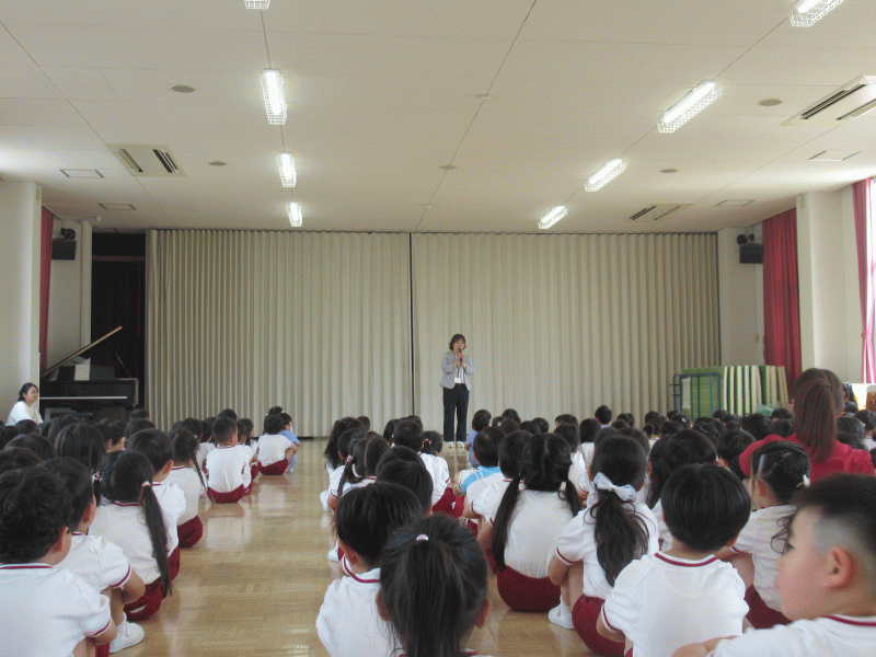 園長先生からは、「もうすぐプールや水遊びも始まりますね。楽しいことがたくさん待っています。好き嫌いせずたくさん食べて、たくさん遊んで、たくさん寝て、元気な身体で過ごしましょうね。」と、お話しをいただきました。