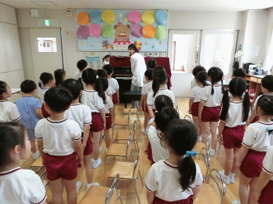 みんな音楽の先生の話を聞きながら、きれいに上手に歌うことが出来ていました♪