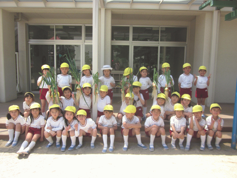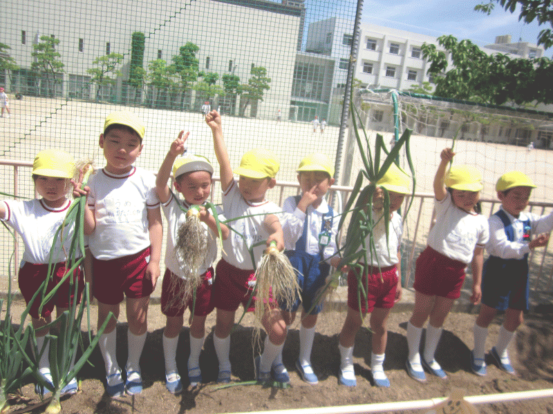 年中組の頃に植えた玉葱が、太陽をいっぱい浴びてどんどん大きくなり、
