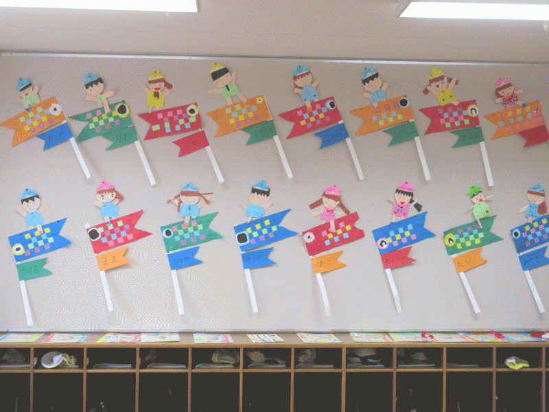年長組の5月壁面は、こいのぼりに乗った自分を製作しました(*^_^*)