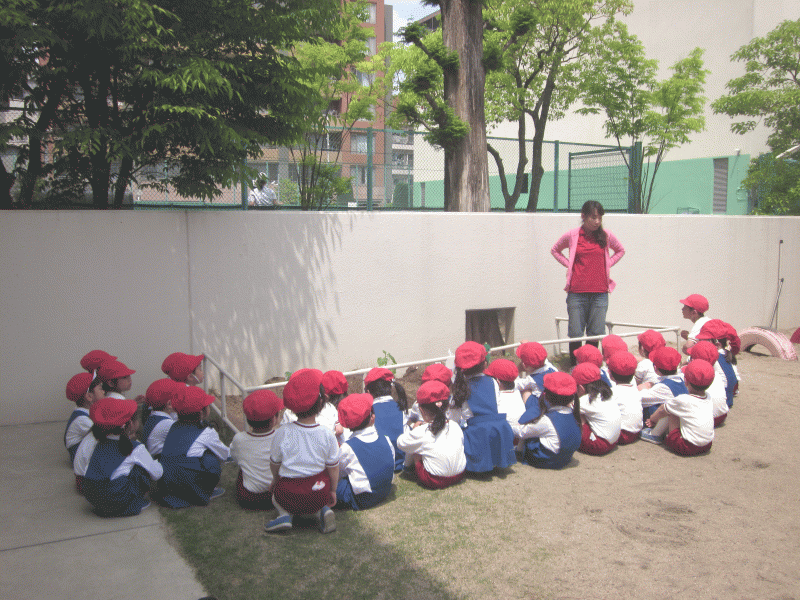 最後は、ちょうちょさんになって真ん中に集まり、目を隠してチューリップのお歌を大熱唱♪