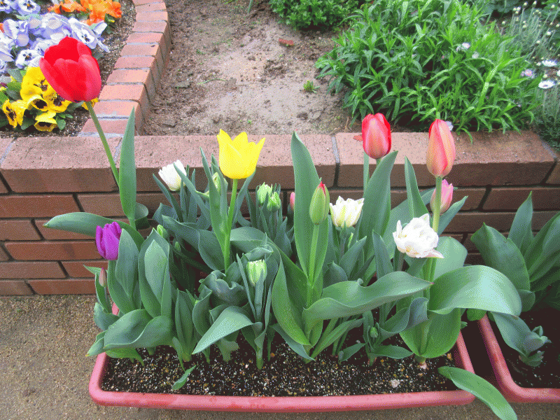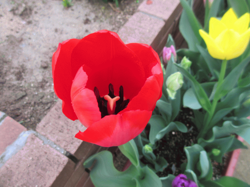 皆で植えて、大切に育ててきたチューリップが咲き始めました!!