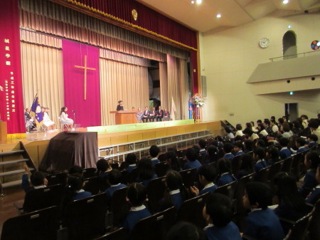 新入園児の子どもたちを「ようこそ!」と迎え、城星学園幼稚園の入園式が行われました。