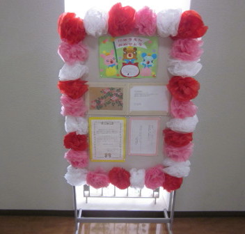 次は、今日の日に向けて準備をしていた年長組さんから、お祝いの言葉とうたのプレゼントです。