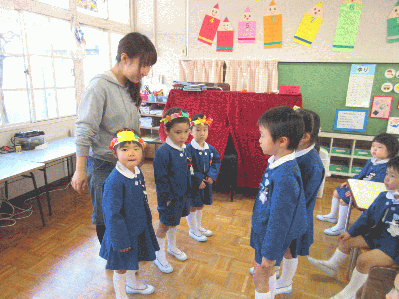 幼稚園のお友だちみんなが揃った遊戯室で、