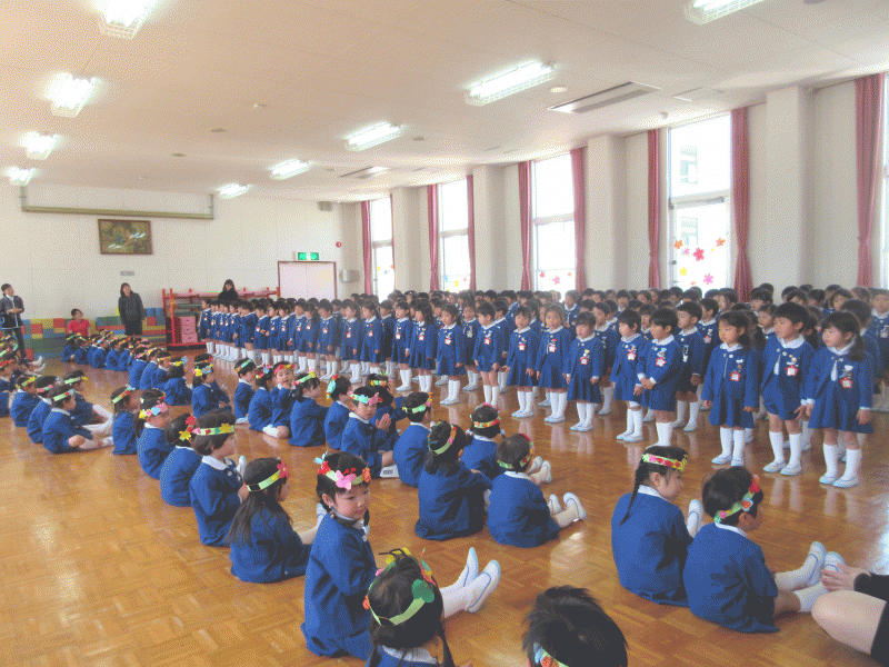 そして、新入園児の子どもたちとお家の人、先生たちが揃いました。