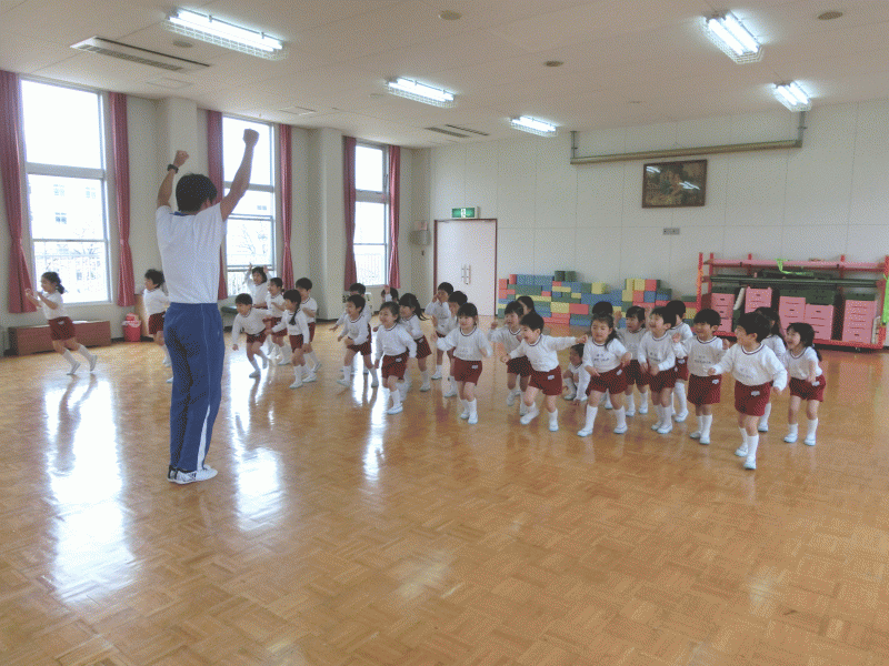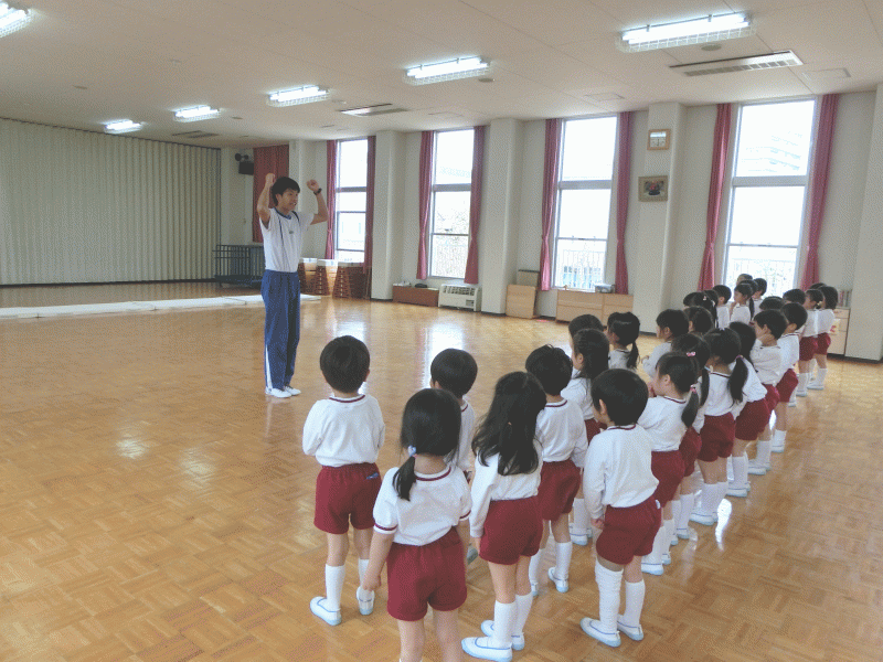 はじめに、みんなで元気にご挨拶!その後、準備体操をしました♪