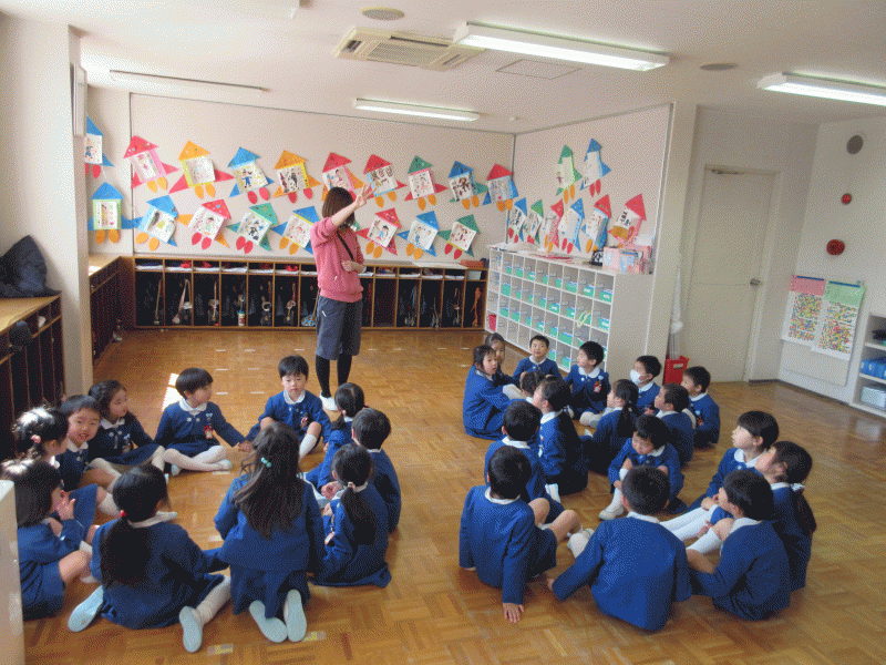 今日は、幼稚園最後の英語指導と音楽指導の日でした。